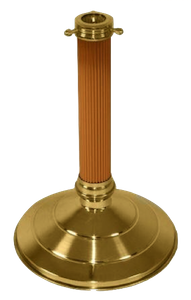Mide alrededor de 50cm de alto, la base es de lámina de latón rechazada, se utilizan con banderas sencillas, pueden ser de plástico negro o dorado.